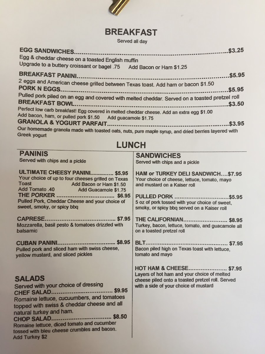 Fried egg and cheddar cheese on an English muffin. Upgrade to bagel or croissant. Add on bacon, ham, or sausage..